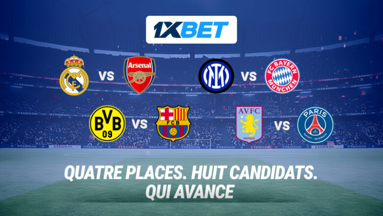 Le meilleur site de paris sportifs international 1xBet propose des cotes élevées et un large éventail de paris sur les matchs retour des quarts de finale du plus important tournoi de clubs d’Europe. Suivez les principes du jeu responsable, placez vos paris via le lien et partagez la victoire avec vos favoris !